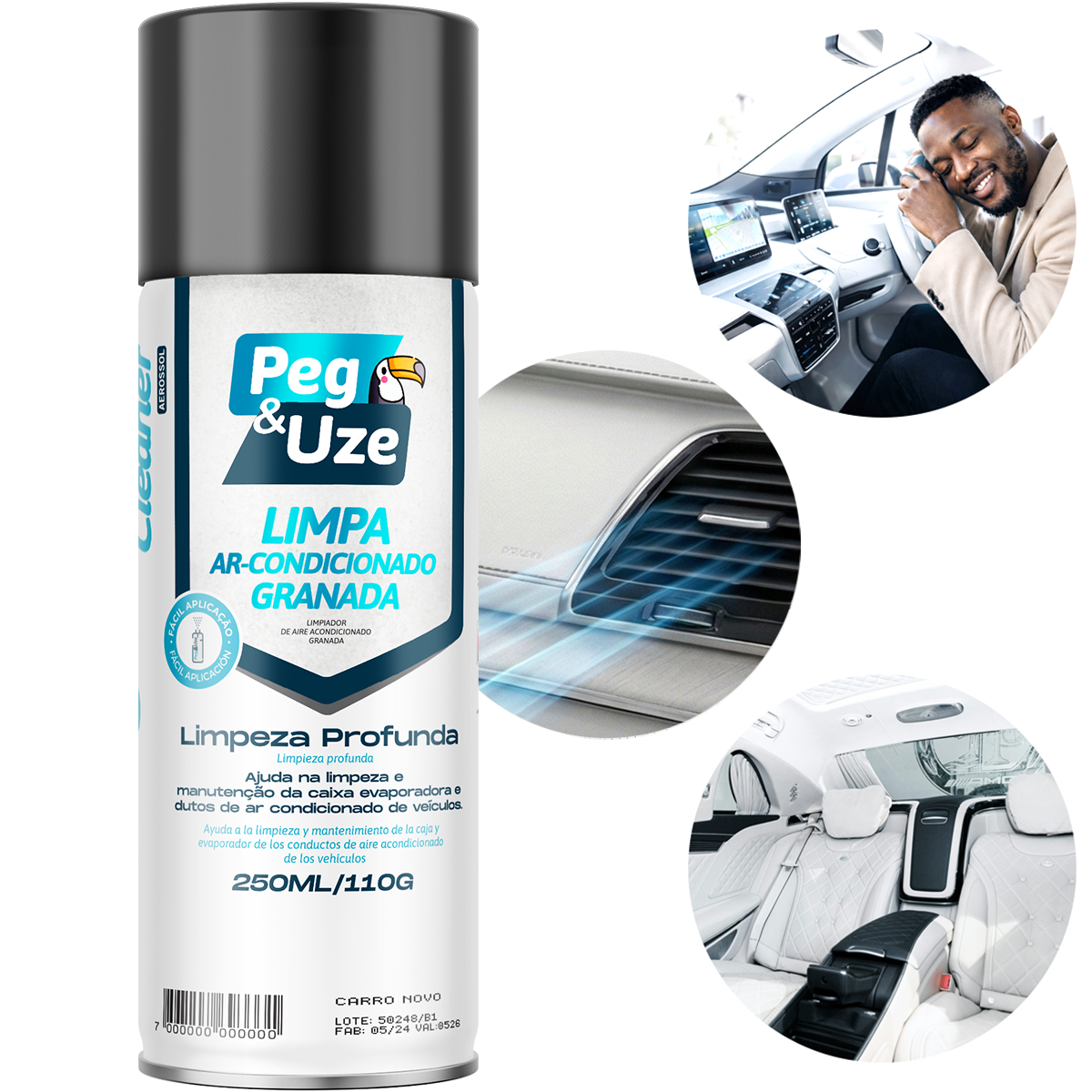 O Limpa Ar-condicionado é um produto desenvolvido para a limpeza no sistema de ar condicionado de veículos em geral. Combate com eficiência odores desagradáveis, que proliferam no interior do ar condicionado, principalmente no evaporador, condensador, tubulações e nas partes internas, tais como: bancos, teto, cortina, piso, entre outros. Dispõe de uma válvula especial que trava após o acionamento, e libera automaticamente o produto no interior do veículo, efetuando assim a limpeza do ar-condicionado.